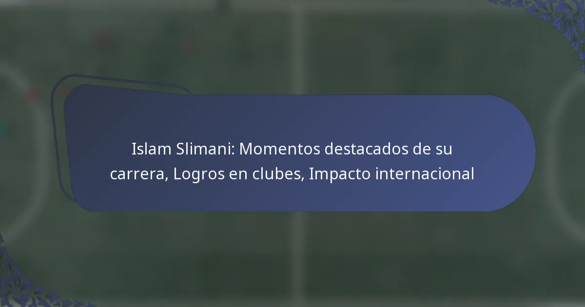 Islam Slimani ha tenido un impacto significativo tanto en el fútbol de clubes como en el internacional, mostrando su talento como un delantero prolífico. Su carrera está marcada por hitos clave, logros importantes y actuaciones notables que han definido su trayectoria en el deporte.